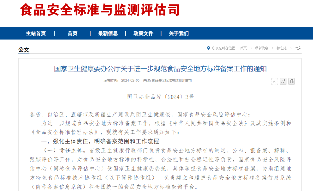 国家卫生健康委办公厅关于进一步规范食品安全地方标准备案工作的通知