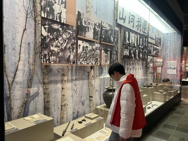 第五站队员们来到了辽宁八大红色基地之一的抗联陈列馆,巨大的浮雕与搭建的栩栩如生的场景,以赵一曼和杨靖宇同志为首的感人故事,一次次触动我们每一个人的心弦,最后在展馆中巨大的烈士碑前默哀,以表悼念。
