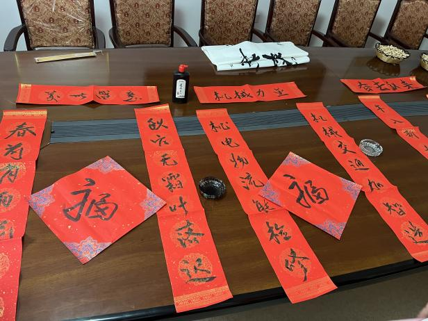第三站队员们来到了光荣院的会议室与食堂,与老一辈共同探讨书法的艺术。老一辈们笔老墨秀,同时也不厌其烦的指点,最后为机械工程学院题词祝福;与孤身在外的老人唠起了家常,家人们不在身边,切实了解他们的生活状况和环境,实实在在的去温暖他老人,为社会尽一份属于我们青年一代的绵薄之力。