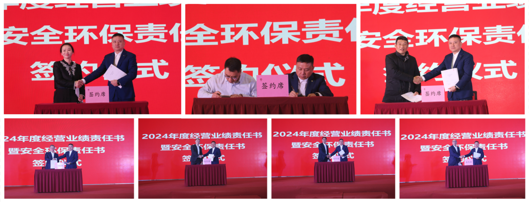 为进一步坚定信心、明确目标、压实责任,会议现场签订了成员企业2024年度经营业绩责任书、安全环保责任书。