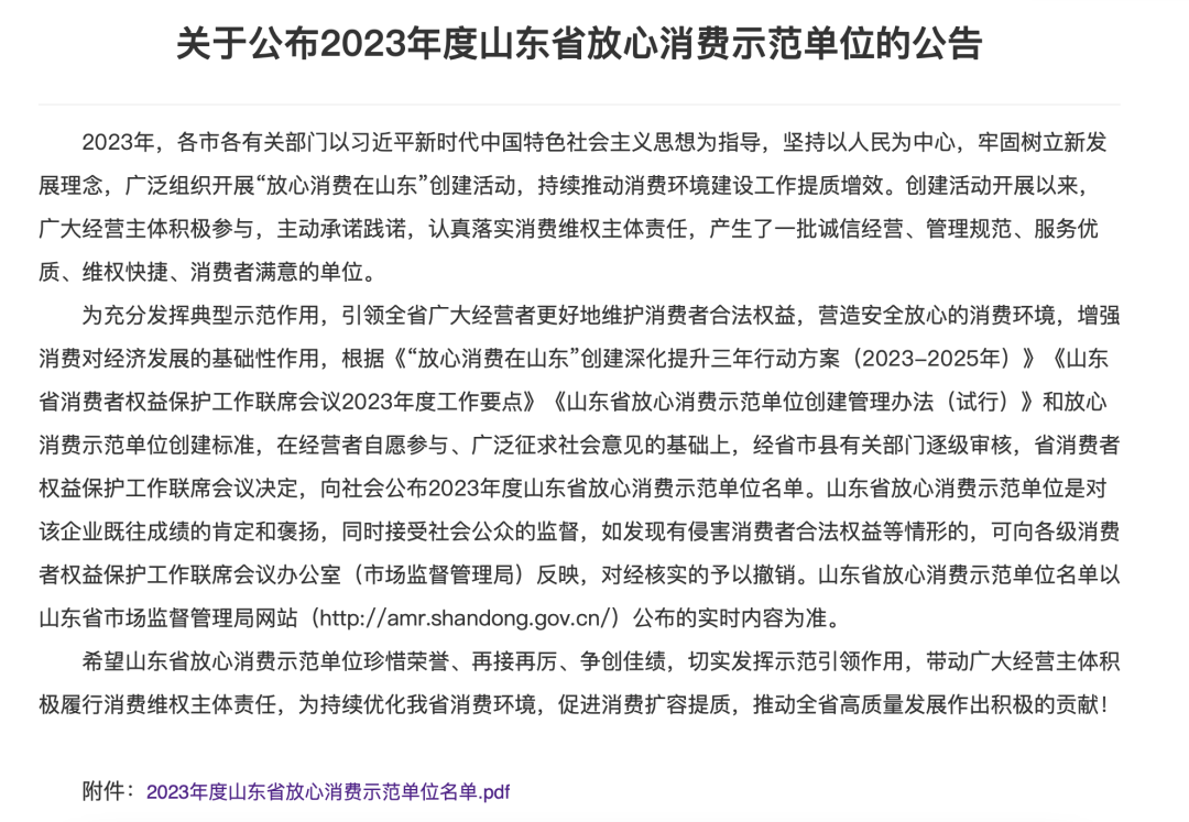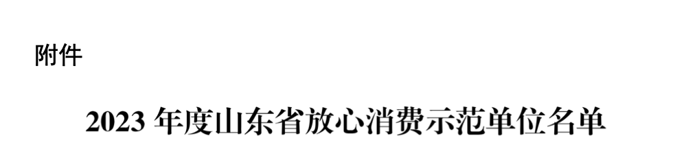 2023年度山东省放心消费示范单位