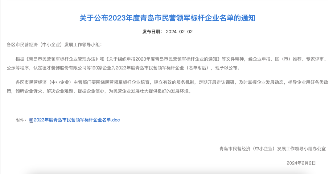 青岛市民营领军标杆企业