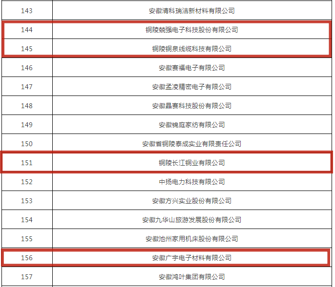2月1日,安徽省市场监管局公布批准认定的185家2023年皖美品牌示范企业名单,我会常务副会长单位——安徽国电电缆股份有限公司,副会长单位——安徽宇测线缆质检技术有限公司,理事单位——安徽华通电缆集团有限公司、晶锋集团股份有限公司、安徽星鑫材料科技股份有限公司、安徽广宇电子材料有限公司,会员单位——铜陵兢强电子科技股份有限公司、铜陵铜泉线缆科技有限公司、安徽环瑞电热器材有限公司、铜陵长江铜业有限公司,分别荣登榜上。