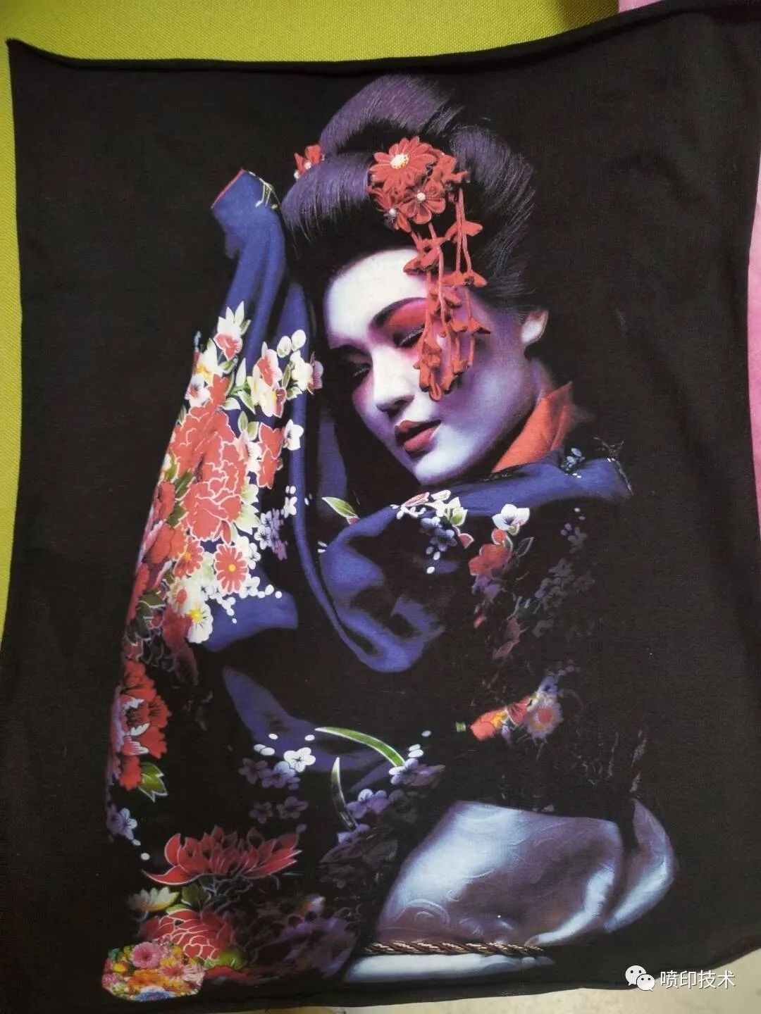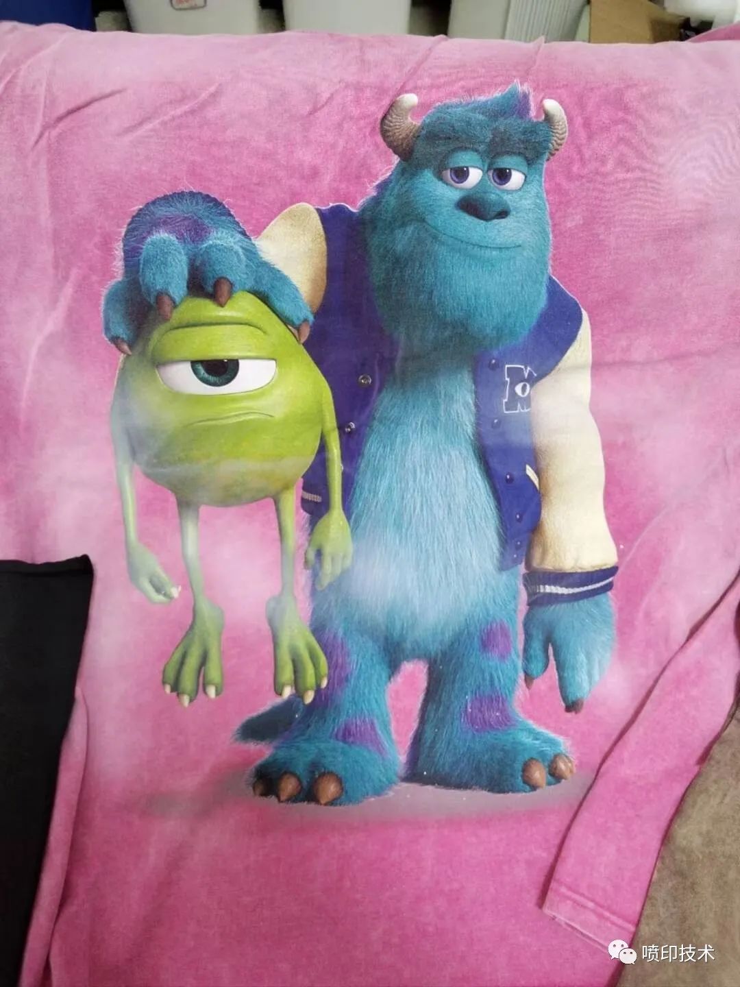 传统的烫画转移印花防升华工艺是彩色印刷+白色胶浆+二次防升华胶浆+黑色或黄色防升华粉→烘干。缺点是工艺复杂,需要开版丝印,而且产品手感偏硬,不适合大尺寸花型。