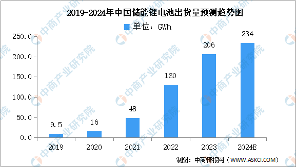 在风电、光伏装机量持续增长与5G基站建设加快的背景下,储能锂电池需求快速增长。12月下旬,储能电池行业出现冲量现象,带动储能锂电池出货量增长。中商产业研究院发布的《2024-2029全球与中国储能锂电池市场现状及未来发展趋势》显示,2023年我国储能锂电池出货量达206GWh,同比增长59%。中商产业研究院分析师预测,2024年中国储能锂电池出货量将增长至234GWh。
