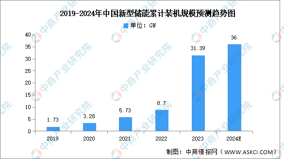 新型储能发展迅速,已投运装机超3000万千瓦。中商产业研究院发布的《2023-2028年中国新型储能行业市场深度研究及投资前景展望报告》显示,截至2023年底,全国已建成投运新型储能项目累计装机规模达31.39GW,新增装机规模约22.6GW,较2022年底增长超过260%,近10倍于“十三五”末装机规模。从投资规模来看,“十四五”以来,新增新型储能装机直接推动经济投资超1千亿元,带动产业链上下游进一步拓展,成为我国经济发展“新动能”。中商产业研究院分析师预测,2024年中国新型储能累计装机规模将达36GW。