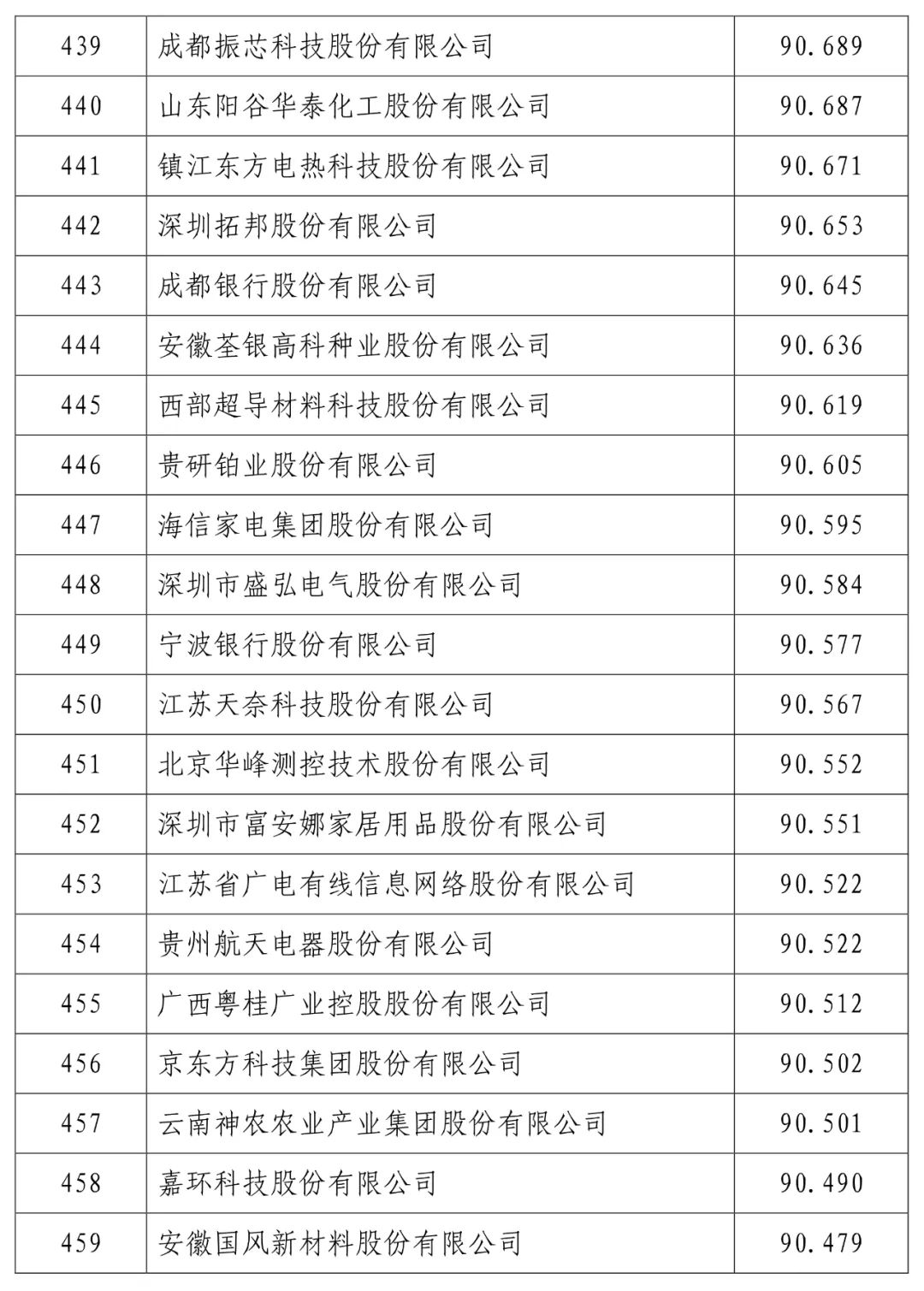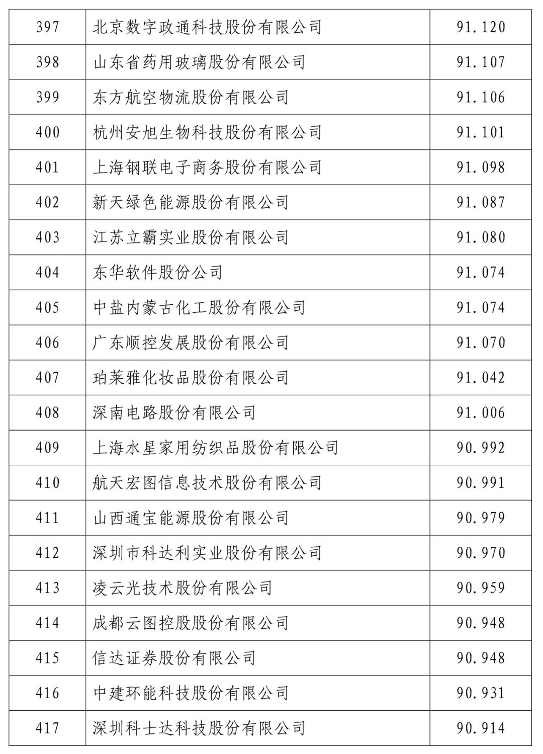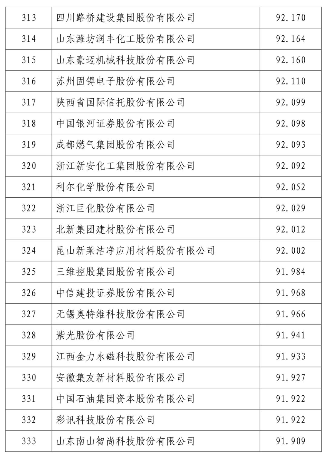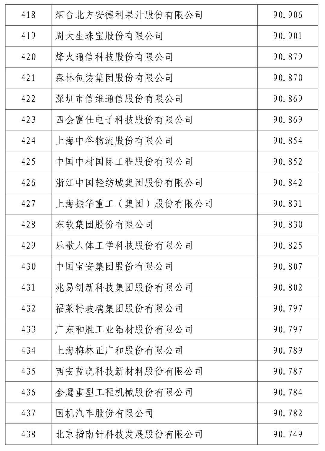 中国建设银行股份有限公司(信用指数:98.716)位列2023中国上市公司信用500强榜首,中国工商银行股份有限公司(信用指数:98.472)、中国农业银行股份有限公司(信用指数:98.100)、贵州茅台酒股份有限公司(信用指数:97.874)、中国石油化工股份有限公司(信用指数:97.868)、中国银行股份有限公司(信用指数:97.814)、珠海格力电器股份有限公司(信用指数:97.600)、中国建筑股份有限公司(信用指数:97.400)、美的集团股份有限公司(信用指数:97.346)、中国移动有限公司(信用指数:97.205)进入前10名。