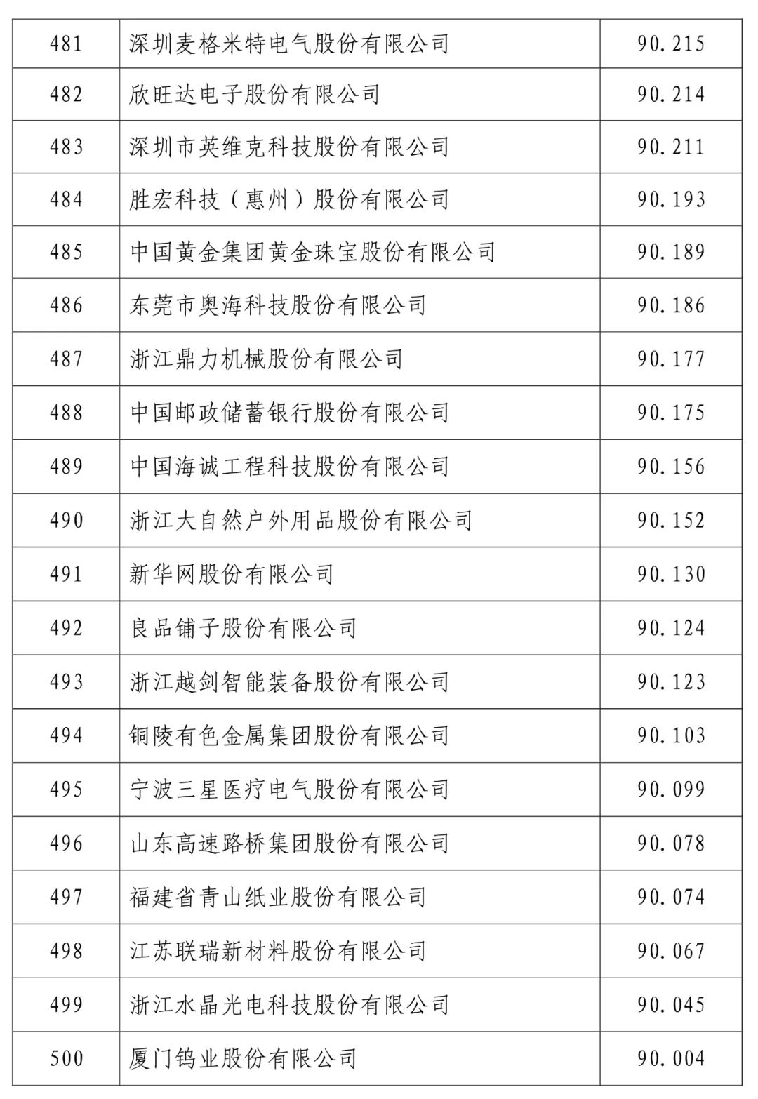 2023中国上市公司信用500强入围门槛为:企业综合信用指数为90分以上,且2022年归属于上市公司股东的净利润为1.64亿元以上,较上一年度的1.5亿元提高了0.14亿元。