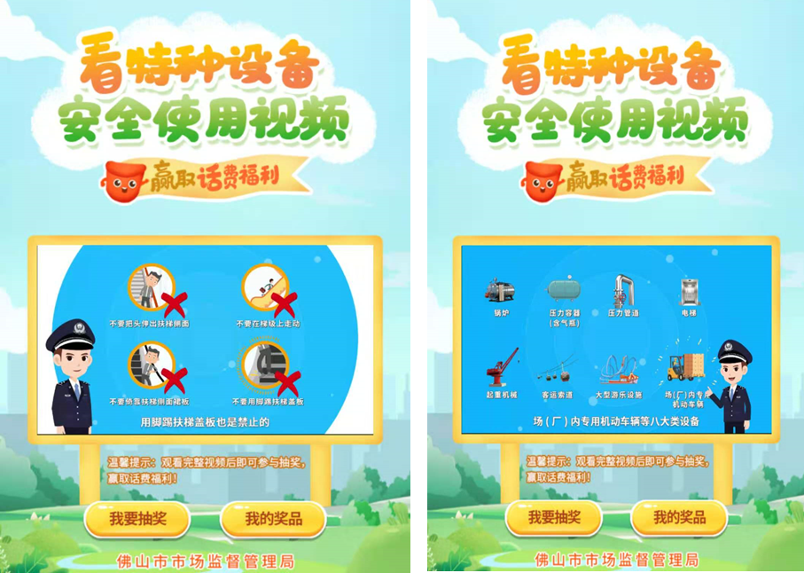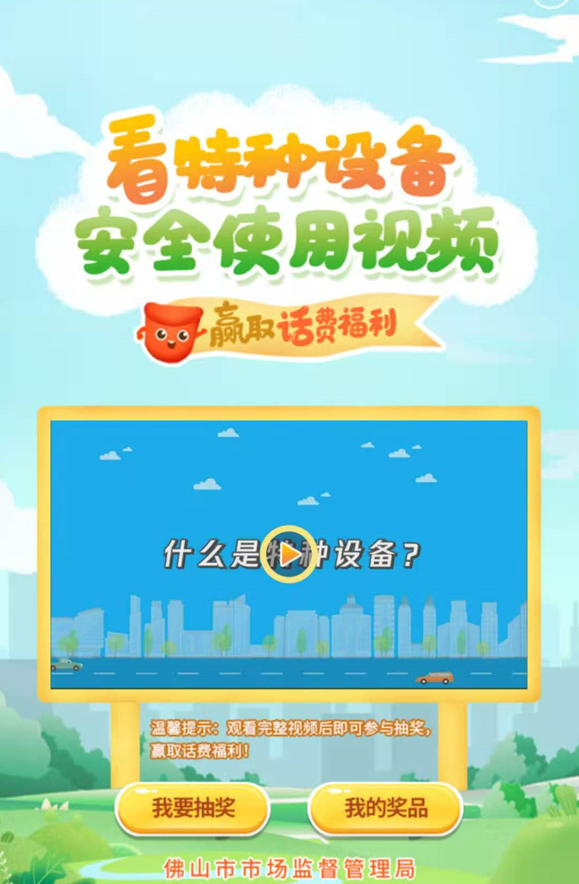 为了让广大市民对特种设备知识有更多了解,增加社会公众的特种设备安全意识,佛山市市场监督管理局制作了一期特种设备MG动画视频,一起来学特种设备安全知识吧,还有机会赢取话费哦!