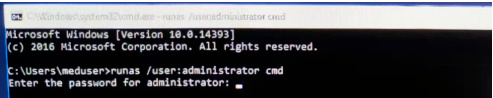 2.再CMD 中输入runas /user:administrator cmd,注意空格。