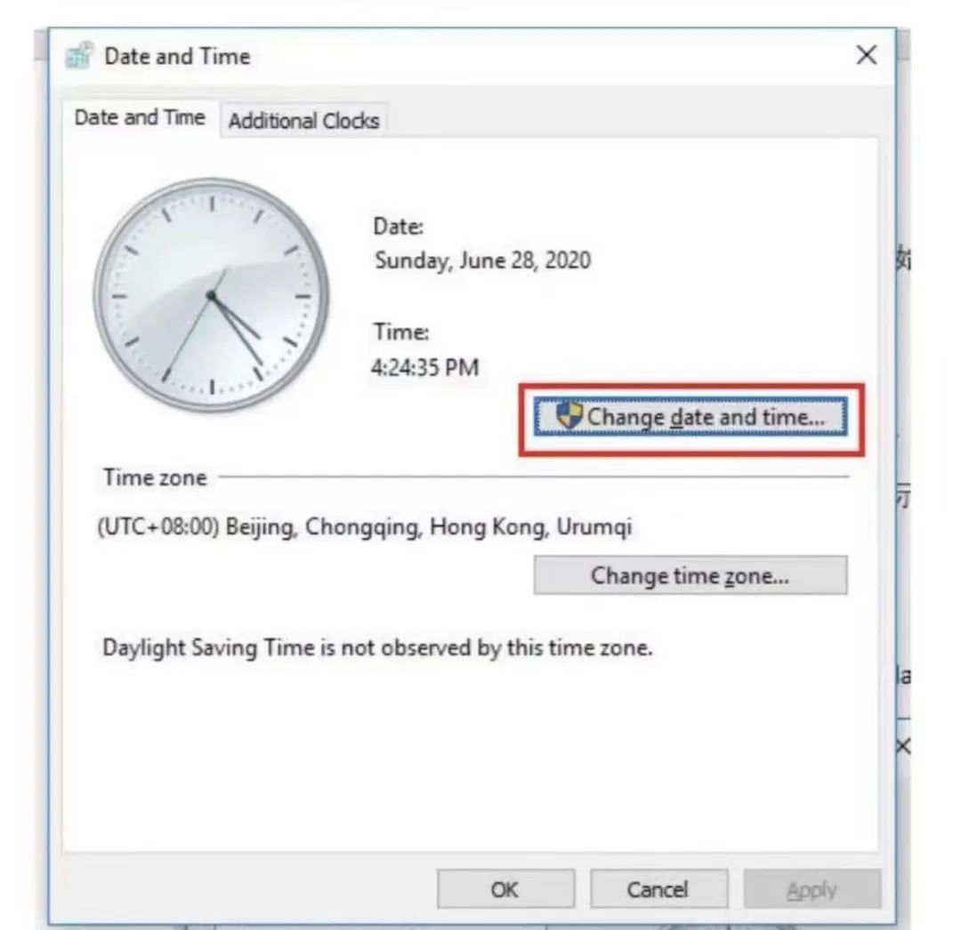 5. 弹出修改时间对界面(与Windows相同),点击change date and time
