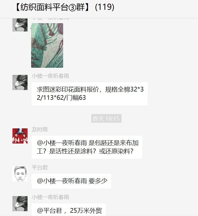 申请加入"纺织面料平台群"的步骤: