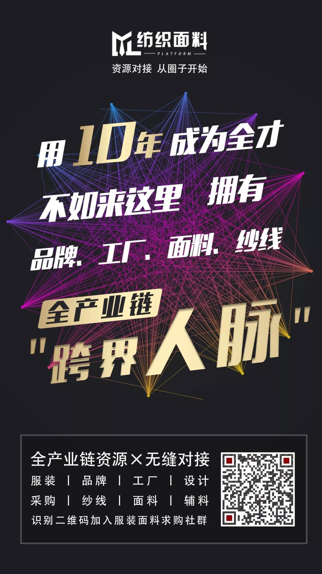 纺织面料平台是集原料、纱线、坯布、面料、服装于一体的专业供应链平台,汇聚行业20万+精准用户,从企业主到行业从业者,覆盖行业各个方面。秉承打造全方位供应链数据平台的理念,纺织面料平台帮助品牌进行推广宣传,扩大品牌知名度和影响力,在品牌、供应商和采购商之间搭建桥梁,聚焦生产端,优化供给侧,让纺织服装行业的各大领域可以依托平台深度交流,达成合作。