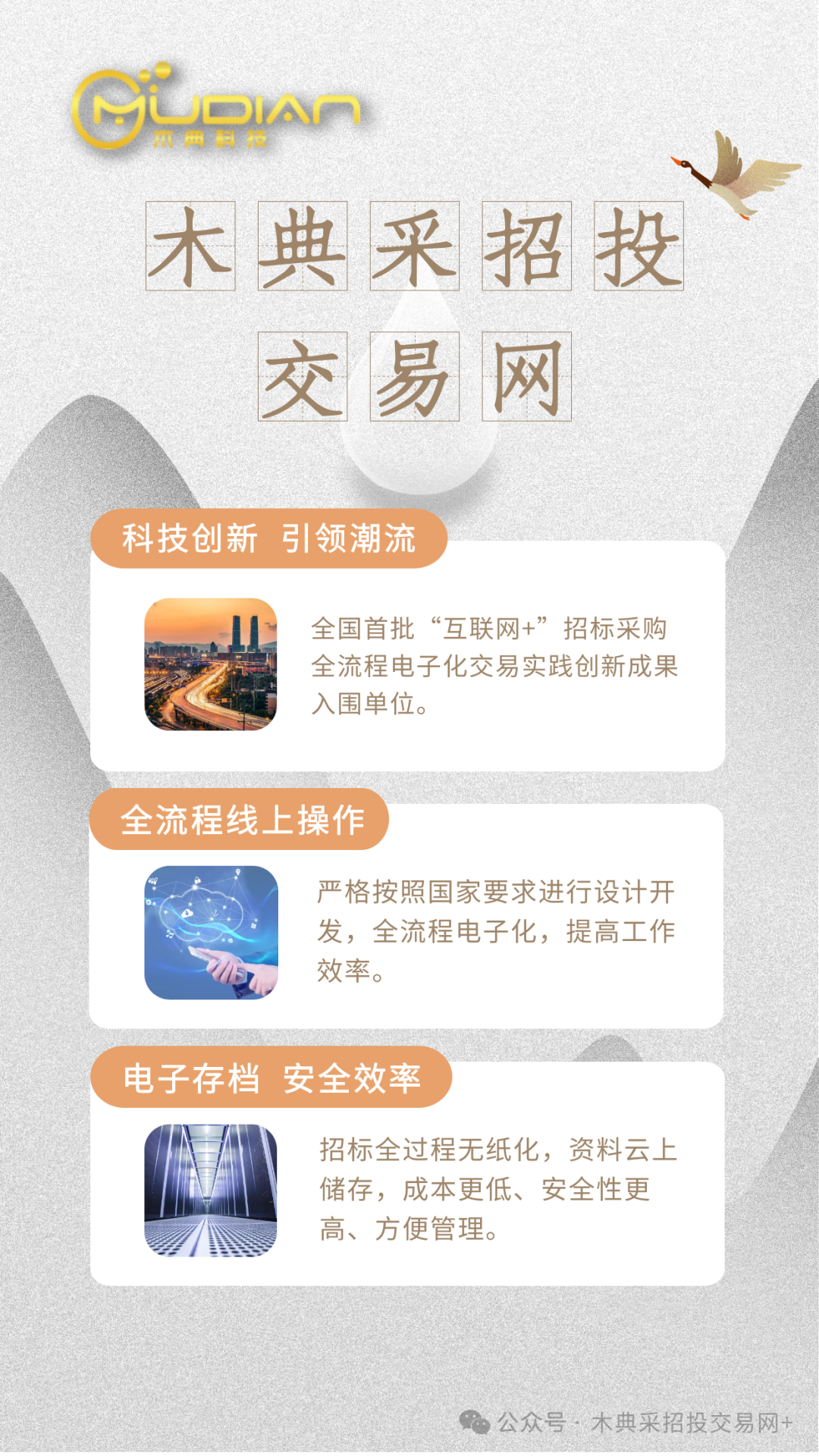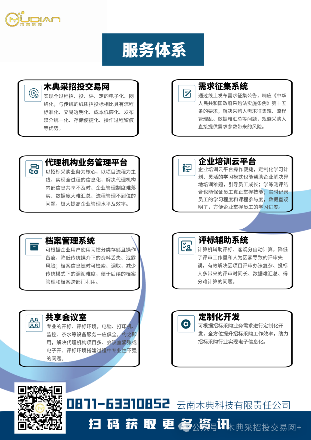 木典采招投交易网(以下简称采招投交易网)是云南木典科技有限责任公司,严格按照国家相关法律法规和云南省相关要求进行开发、上线、运营的,具有“高并发、高可用、高性能”特点的第三方电子采购/招标信息发布和交易平台。
