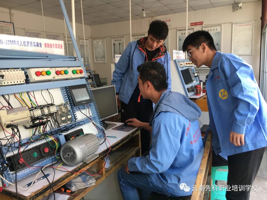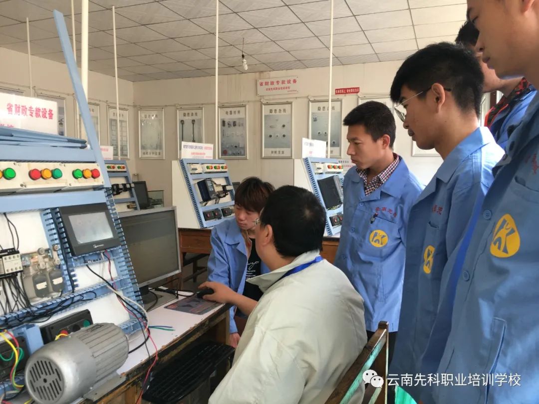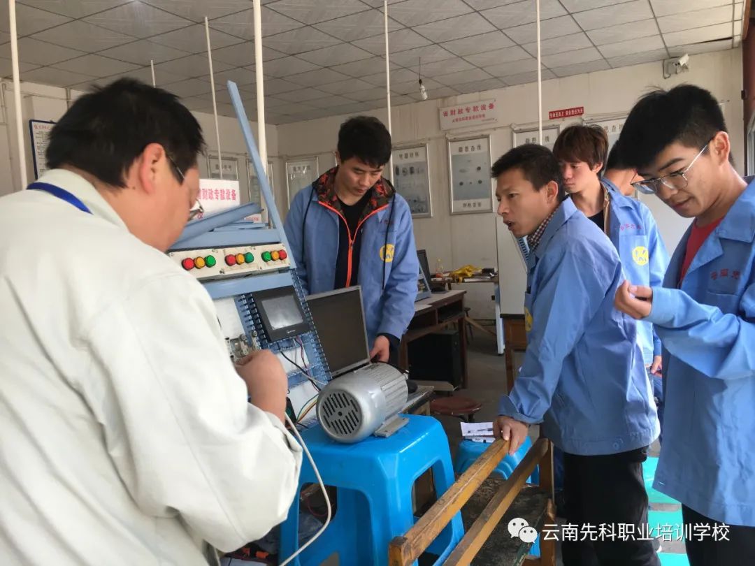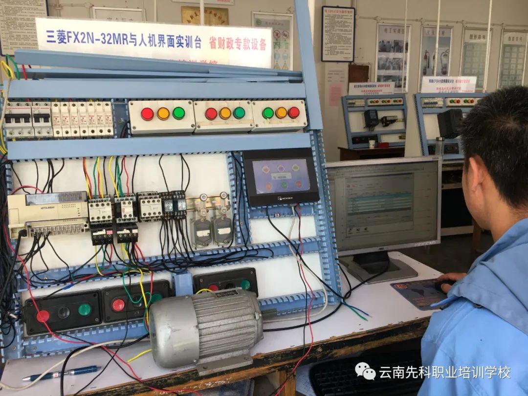电工PLC工业化自动控制班:主讲电工安全常识,电工基础,常用低压电器的结构、原理、故障的排除。机床控制线路的安装,配电屏一、二次线路的原理、安装、电气故障的排除,照明线路、常用灯具的安装方法、安装和故障排除,电气识图的方法、步骤。电工仪器、仪表的安装、使用。PLC组成与工作原理,输入输出布线,二进制、十进制BCD码转换。PLC选型,PLC编程,定时器,计数器,红外线接近开关的应用。三菱、欧姆龙、西门子、PLC编程软件异同编程操作。PLC基本指令及应用,交通信号灯,流水灯,电动机星三角形控制,自动往返控制,双向启动反接电源制动控制,多台电动机顺序启动,逆序停止。触摸屏(人机界面)控制画面的制作,按钮组态。变频器应用与控制;变频器的使用选型;变频器正反转控制;变频器的多速运行。