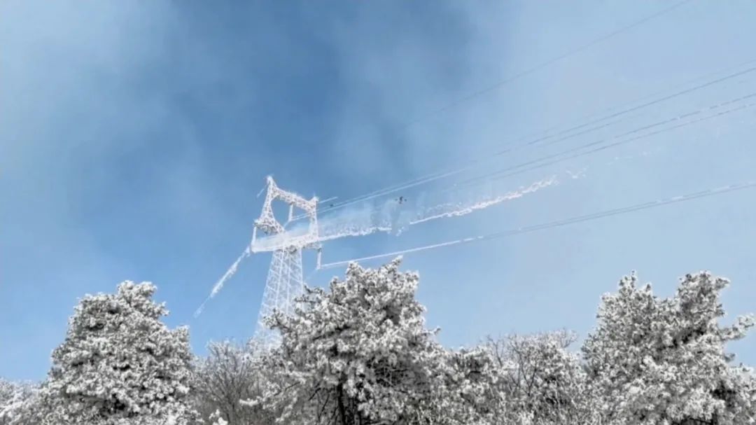 输电运检中心使用无人机进行线路覆冰带电清除工作