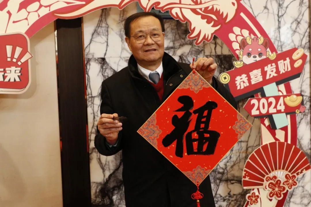 ▲董事长及王老师亲题“福”字及对联