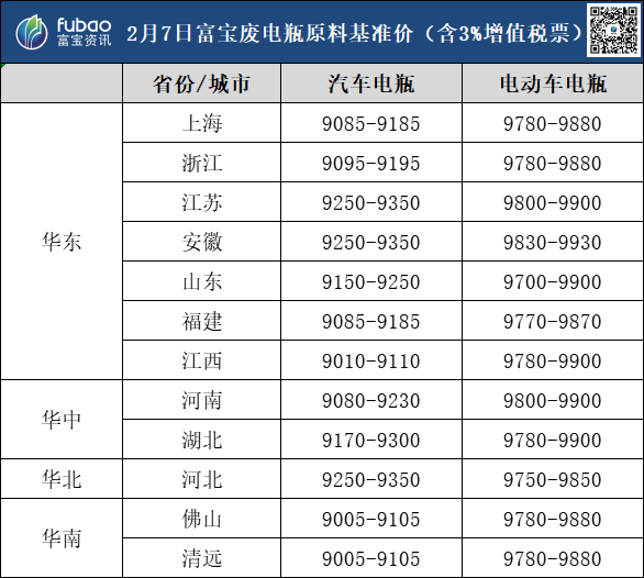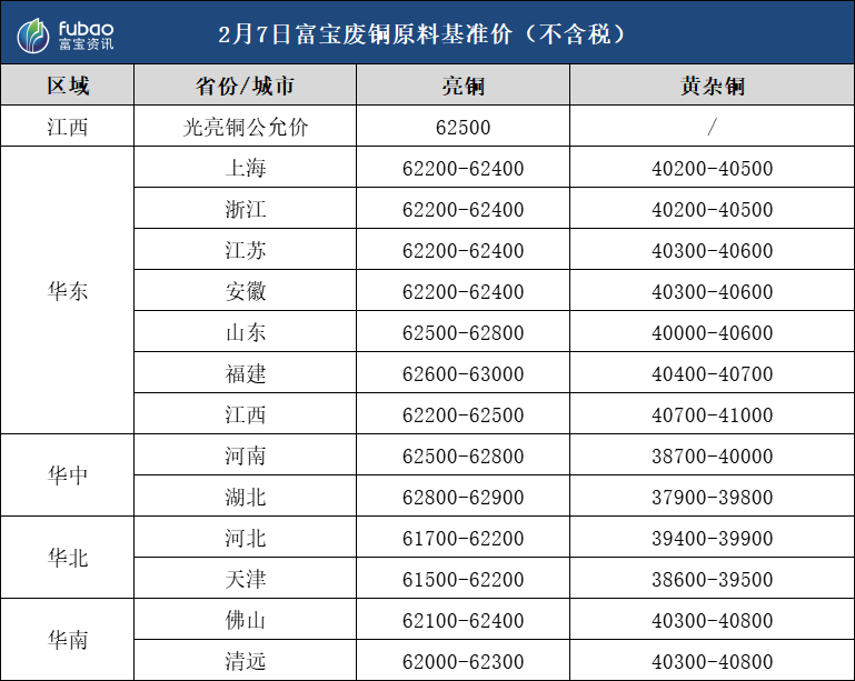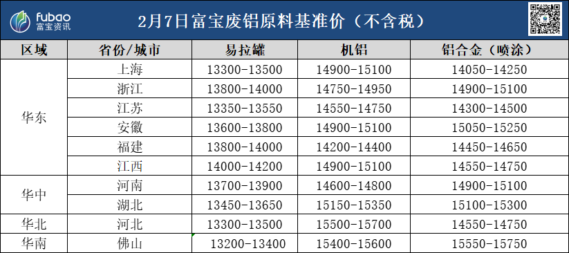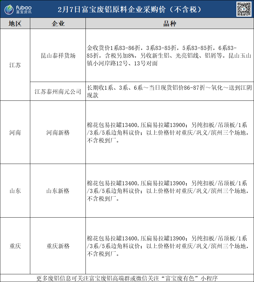 2月7日 富宝基准价、企业报价