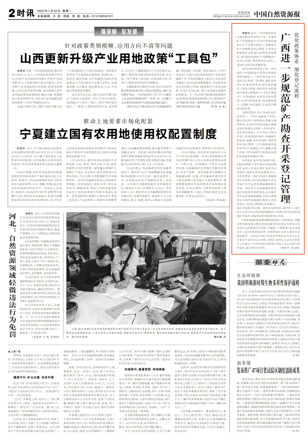 近日,广西壮族自治区自然资源厅印发《关于进一步规范矿产资源勘查开采登记管理的通知》(以下简称《通知》),明确优化矿产资源勘查登记管理、开采登记管理和矿业权登记流程等具体要求,通过细化完善矿产资源勘查开发登记管理,更好服务矿业权人,推动矿业经济高质量发展。