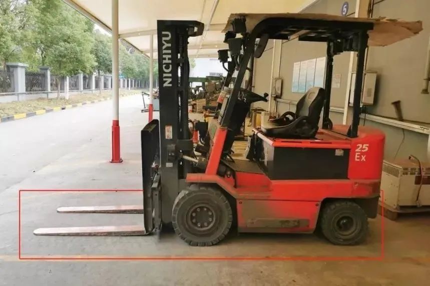 叉车应停放至固定停放区域,叉齿放至地面,拉好手刹,拔掉钥匙