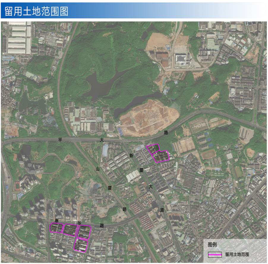 项目利益统筹范围面积为954010.7㎡,经规划研究,确定留用土地落实在《深圳市龙岗103-01&02号片区[山厦地区]法定图则》04及08街坊内。