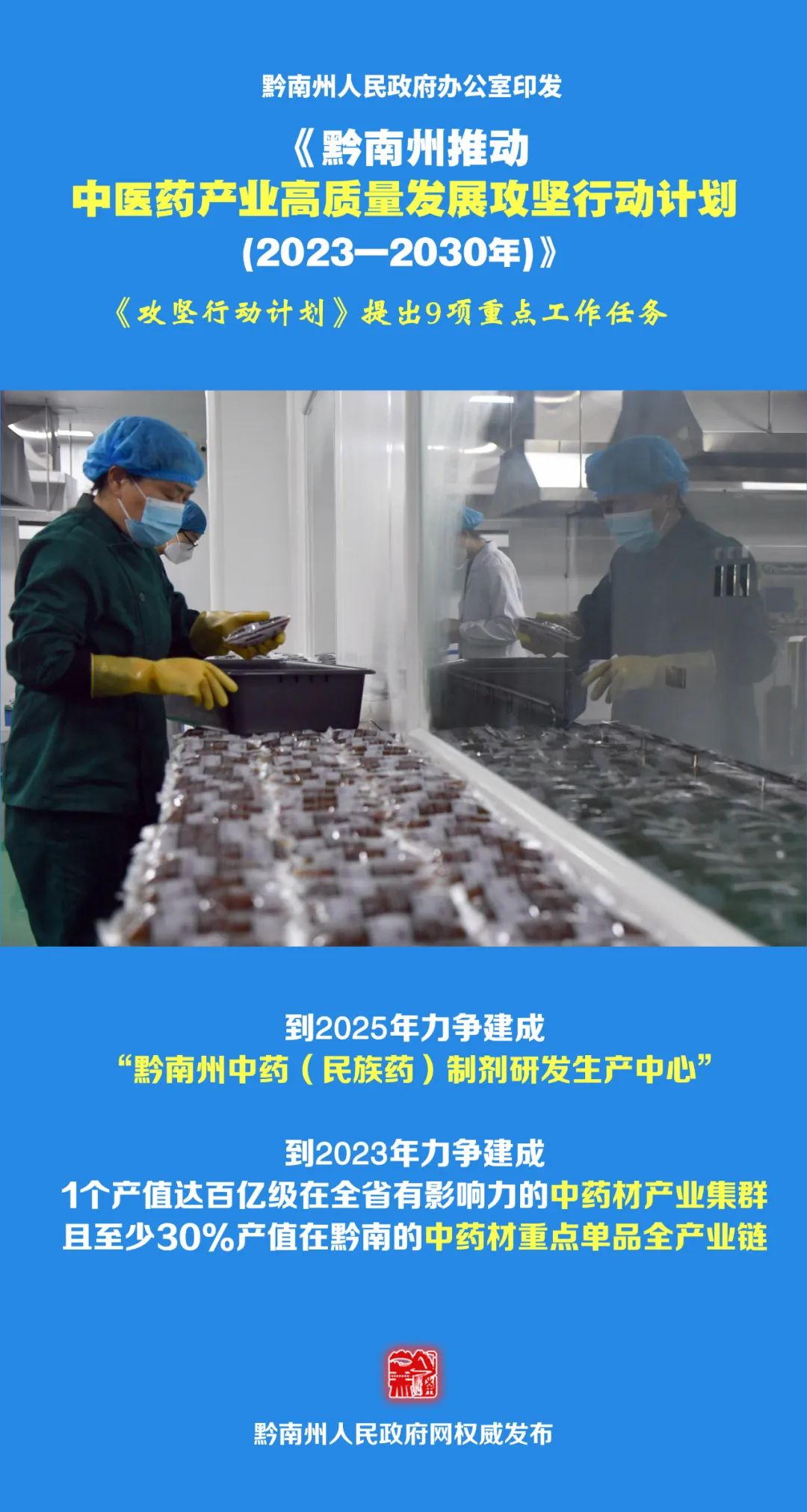 日前,黔南州人民政府办公室关于印发《黔南州推动中医药产业高质量发展攻坚行动计划(2023—2030年)》(以下简称《攻坚行动计划》)的通知,进一步充分发挥黔南中医药(民族医药)特色和优势,实现中医药(民族医药)产业高质量发展。