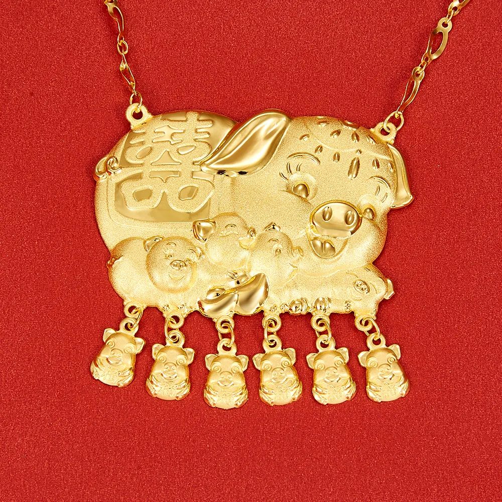 中国人办喜事着重意头,金猪牌上的猪仔数目通常为6或8只,金猪牌据说是寓意结婚后多子多福,猪圆肉润,传宗接代,开枝散叶,家肥屋润;