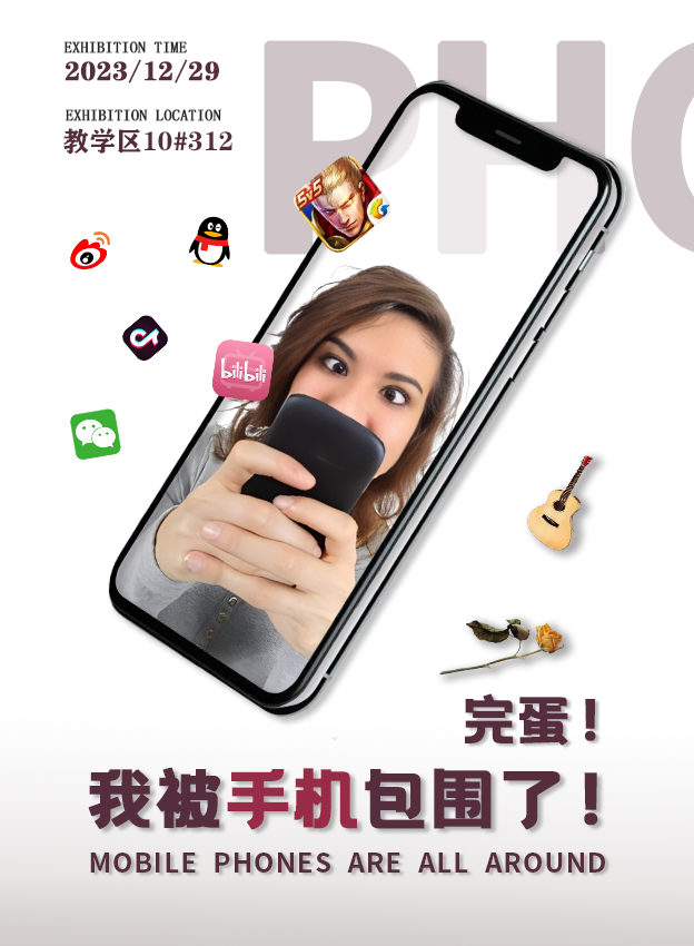 引导人们关注并认识到手机对人们健康具有不良影响,突显它如何干扰人们的面对面社交,导致沟通隔阂;此外,废弃手机也会对环境造成一定的污染。小组成员借此次展出呼吁“抵制手机诱惑,开启健康生活”,并提倡实现可持续发展的生活方式。