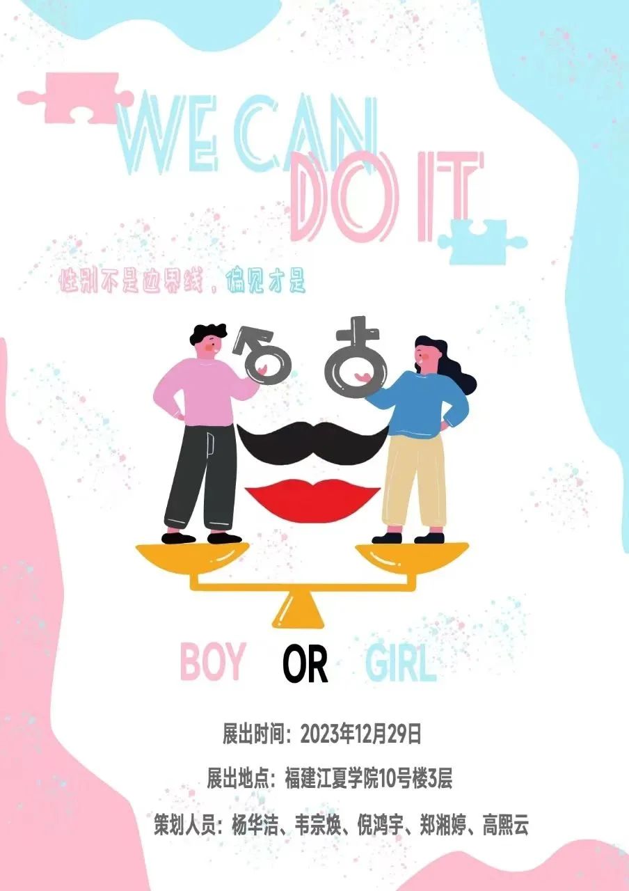 围绕性别平等与性别公正理念,展示打破性别歧视的作品,呼吁打破偏见,撕掉刻板印象与标签,"We can do it!"