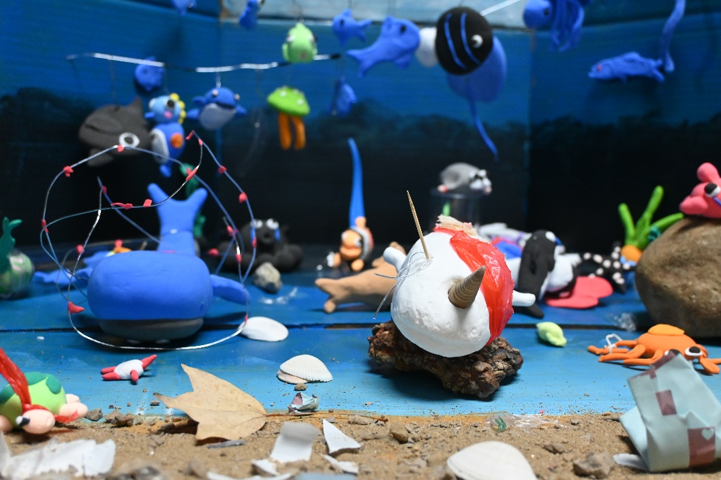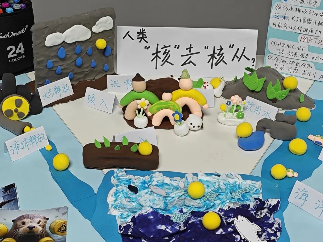 小组成员认知核污染对海底生物生存造成威胁,导致海洋生态链的失衡,希望通过此展览呼召大家共同保护海洋环境,实现海洋资源的可持续利用。