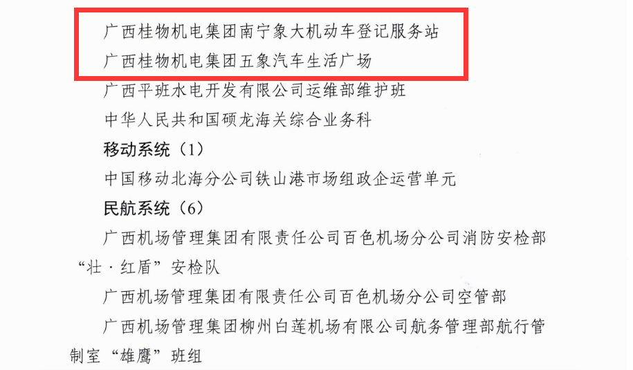 近日,第21届广西青年文明号集体命名结果揭晓,广西现代物流集团所属机电集团五象汽车生活广场、象大机动车登记服务站2个创建集体榜上有名。