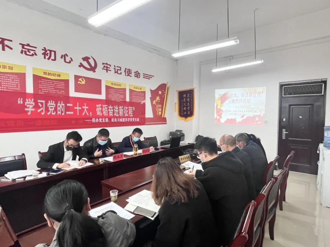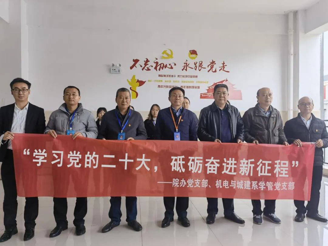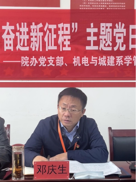 11月18日,院办党支部和机电与城建系学管党支部共同召开支部党员大会并联合开展“学习党的二十大精神,砥砺奋进新征程”主题党日活动。进一步拓展基层党组织建设,共聚联建合力,实现共建共享,推动党建工作强根固魂。院党委副书记、院长邓庆生参加活动并上党课。