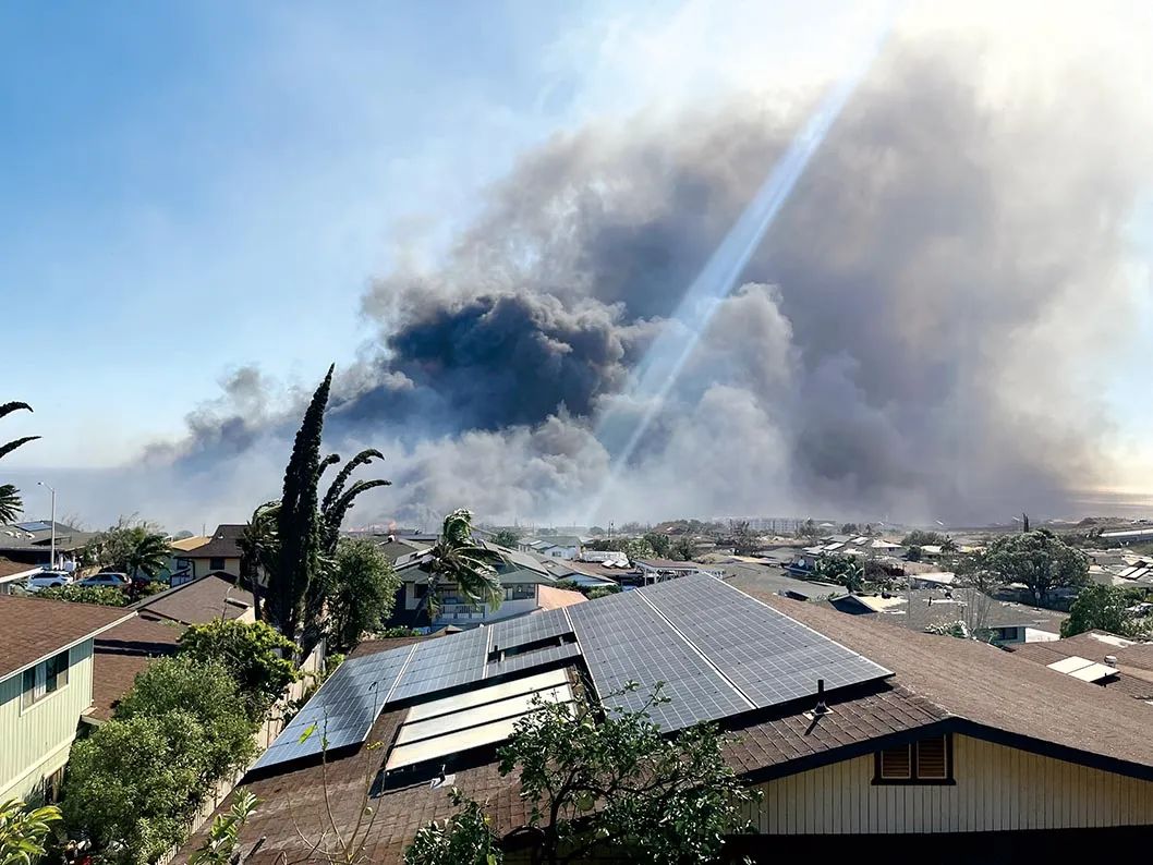 这张 2023 年 8 月 8 日拍摄的照片显示,美国夏威夷州毛伊县拉海纳镇上空浓烟滚滚 新