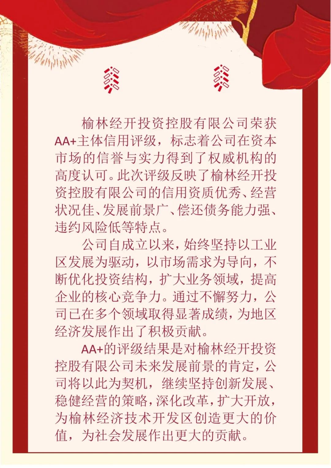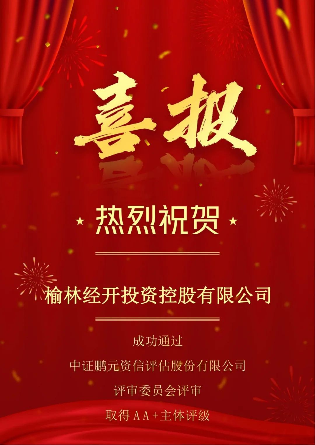 喜报!榆林经开投资控股有限公司取得AA+主体评级