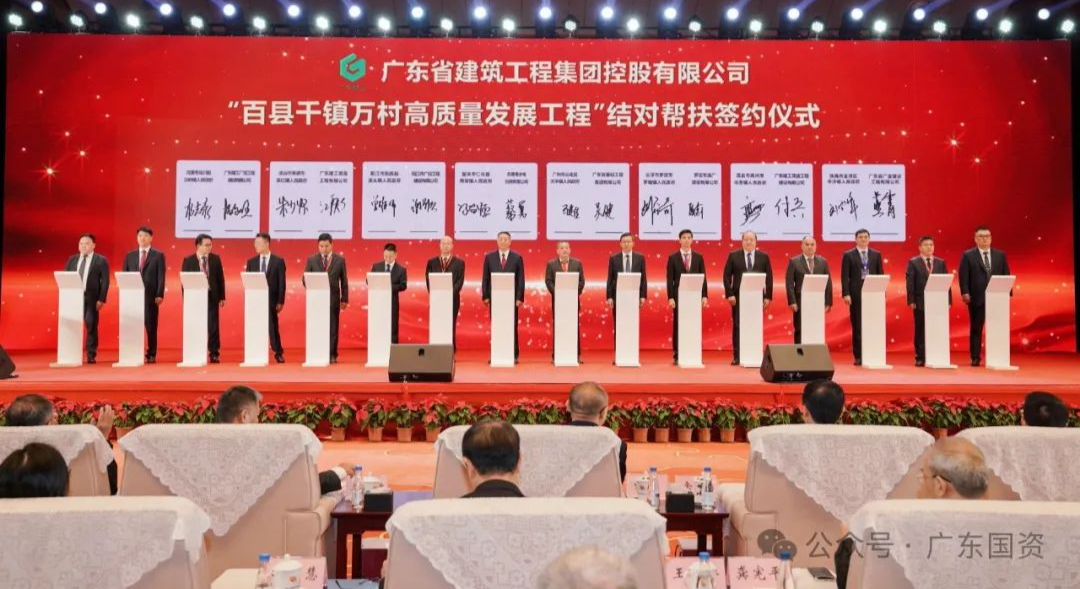 2023年11月28日,广东建工控股与广东省内22个县镇单位签署“百县千镇万村高质量发展工程”结对帮扶协议,展现集团成立七十周年之际的新使命、新担当。