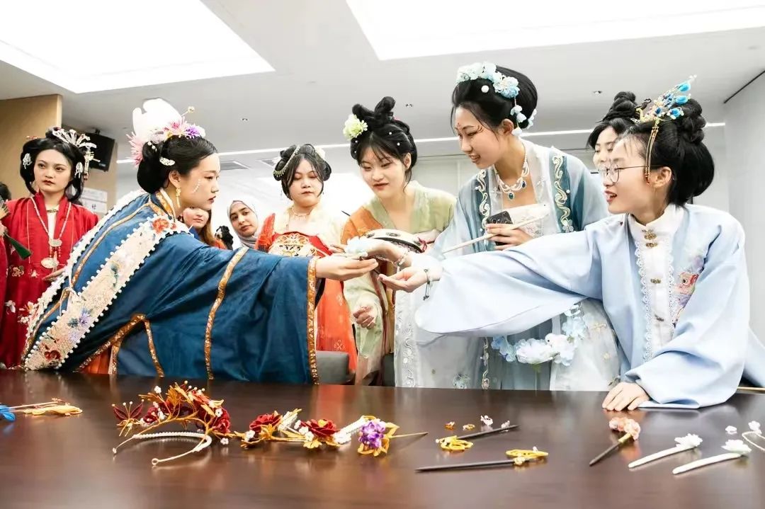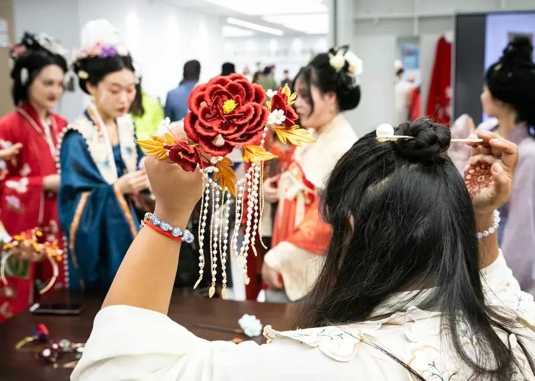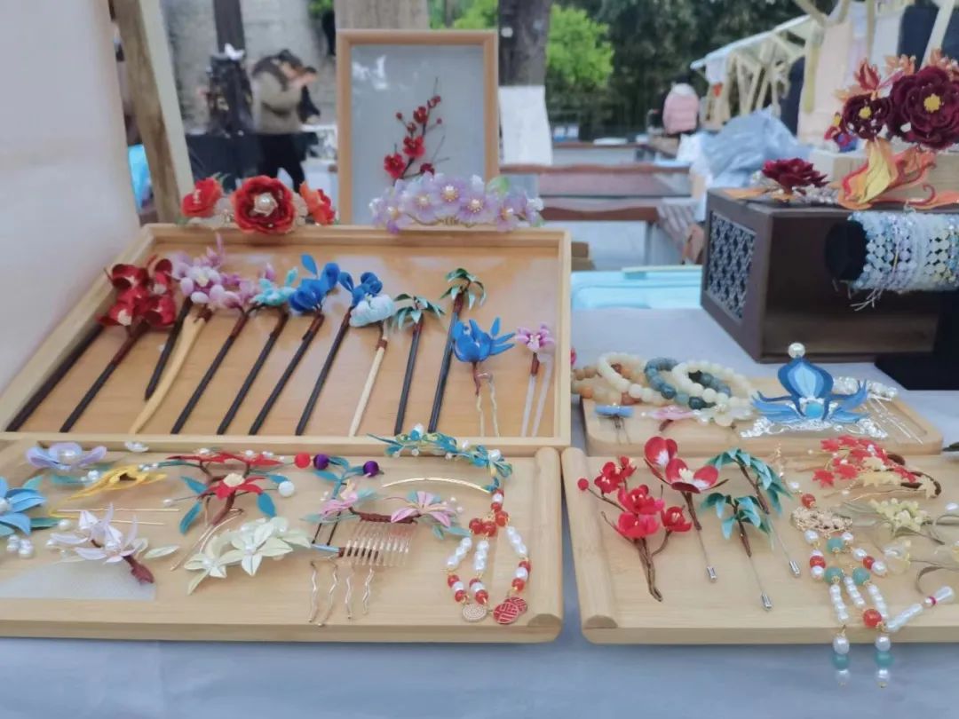 为促进当代青年积极成为中华优秀传统文化的守护者、传承者和创造性转化、创新性发展的探路者、先行者,济南市举办了“齐风宋 韵·诗礼泉城”第四届汉服文化旅游节,我社很荣幸受邀参加了此次活动。本社成员将工美特色文化活动“手造市集”同现场“行云万物市集”以及黄河大集进行联动,坊市之间,人山人海,成功再现了宋代商品经济的繁荣场面。其中,由社团成员所编制的非遗缠花发簪和绒花首饰更是精美典雅,一度成为本次活动中表现手造经济繁荣与魅力的一大亮点。