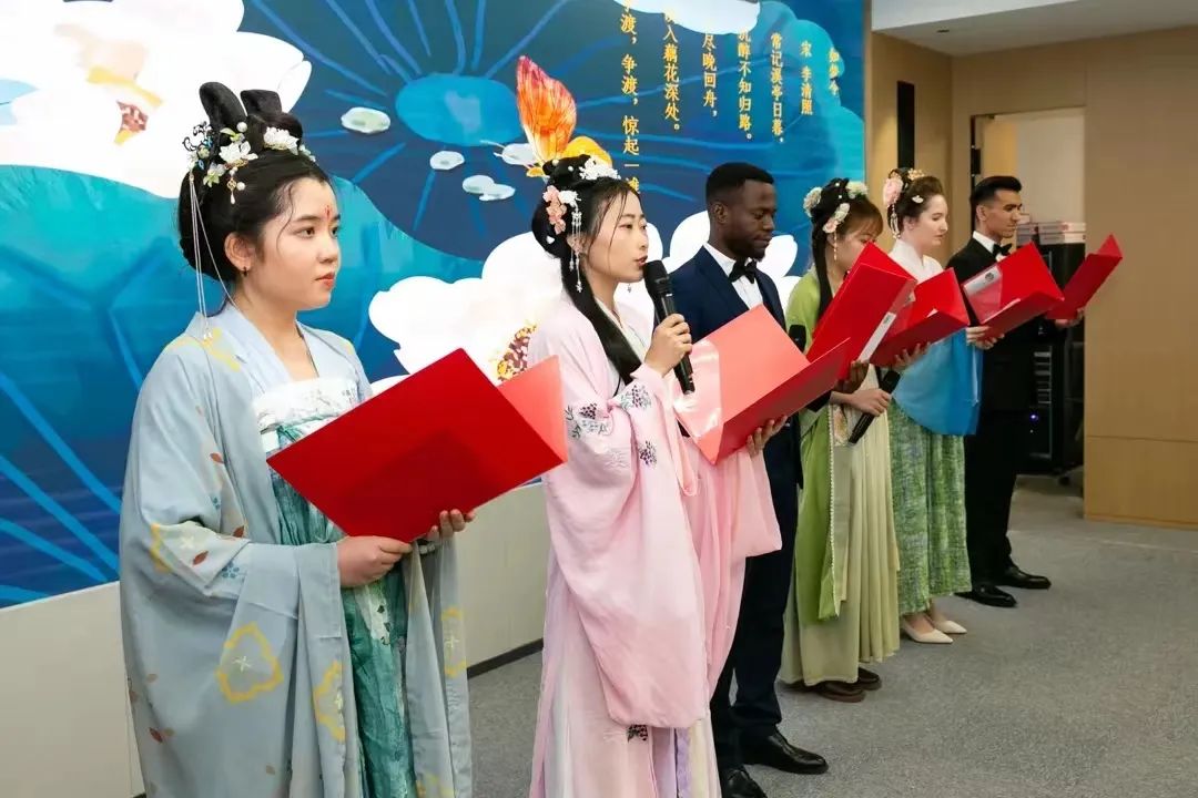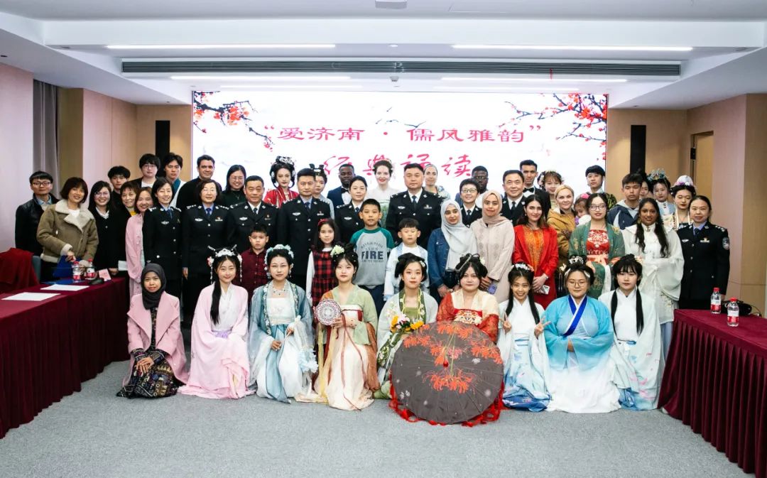 为进一步传播中华优秀传统文化、促进中外文化交流互鉴,并为在济常住外国友人营造浓厚的传统文化氛围,国学社受邀参加山东济南移民和出入境事务服务中心举办的“爱济南·儒风雅韵”经典诵读活动。活动在本社成员带来的汉服展示中拉开序幕,成员们依次上台展示了魏晋到元朝的传统服饰,并对各个朝代服饰的特点进行了专业介绍。精美的服饰和精彩的展示把观众带入了深远悠久的中华文化长河中,令人久久不能忘却。外籍人士纷纷表示,此次“爱济南·儒风雅韵”经典诵读活动,让他们身临其境地感受了中国诗词之美、文化之魅,进一步了解中国人对精神文化生活的美好追求,提高了自身对中华优秀传统文化的热情。