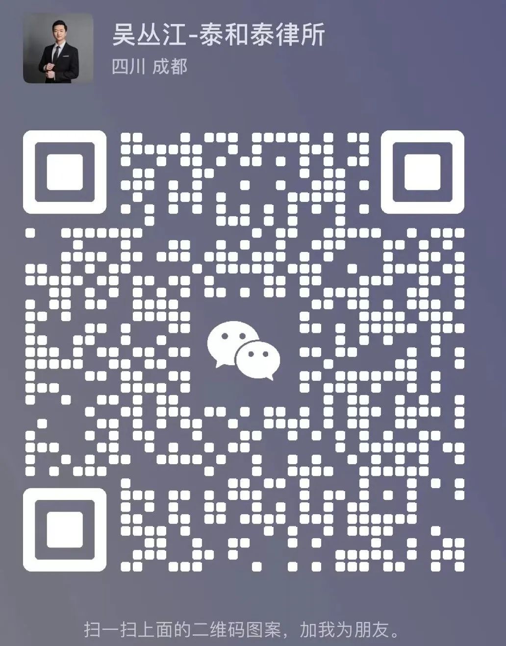 吴丛江,就职于泰和泰律师事务所成都(总部)办公室,获取了中国注册会计师专业阶段考试合格证,同时也是中国注册税务师协会个人会员。