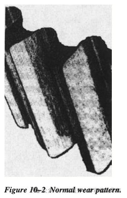 图10–2说明了具有正常磨损模式的齿轮。请注意,每个齿的整个表面在齿顶线上下均匀光滑。
