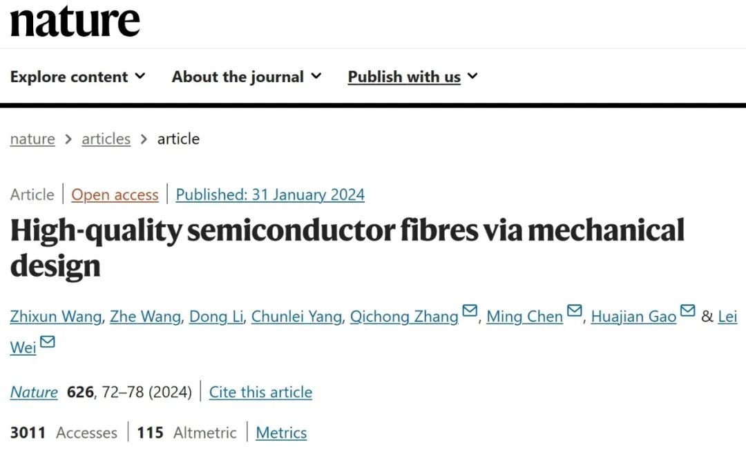 2. 暴露的半导体导线可以集成到具有与金属电极的明确界面的单个柔性纤维中,从而实现光电子纤维和大规模光电子织物。