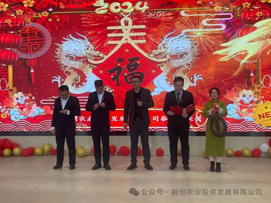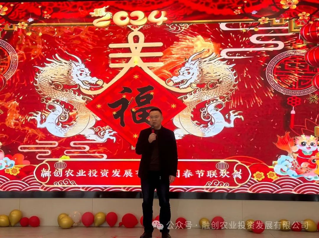 融创农投公司党委书记、董事长陈勇同志代表公司领导班子发表精彩致辞,向公司全体员工致以最诚挚的祝福和最热烈的问候,过去的一年,融创农投全体员工以舍我其谁的担当、只争朝夕的拼劲和一往无前的勇气,汇聚起推动企业高质量发展的强大力量,取得了较为可喜的经营业绩。新的一年,要做敢闯敢试的开拓者、真抓实干的奋进者、永葆初心的坚守者,以龙行龘龘之姿,锚定目标,激发干劲,为融创农投的发展做出更大贡献,预祝公司2024年春节联欢会圆满成功。