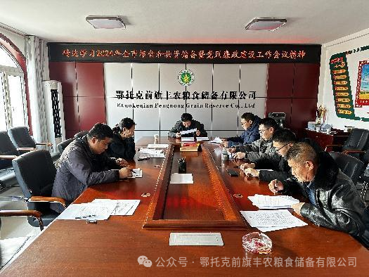 2月6日,丰农粮储公司组织召开2024年党风廉政建设工作会议。会议传达学习了全国粮食和物资储备系统安全生产工作视频会、2024年全市粮食和物资储备暨党风廉政建设工作会议、中共鄂托克前旗纪委关于做好2024年元旦春节期间纠“四风”树新风的工作会议精神,观看了警示教育片《解决独有难题》,全面总结公司2023年的工作,深刻分析当前形势,并安排部署2024年重点工作任务。