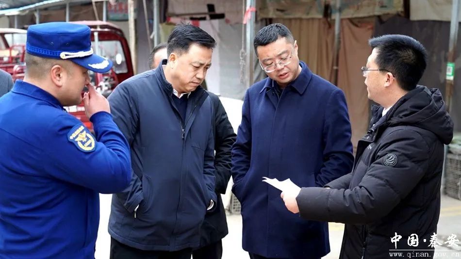 2月7日,秦安县委副书记、县长王龙强检查“春节”期间安全生产及市场供应工作。县委常委、常务副县长张俊义一同检查。