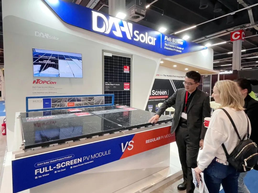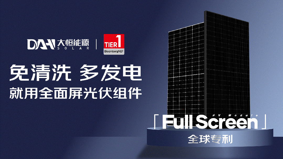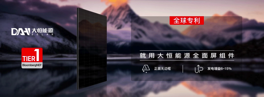 过去一年,在N-TOPCon技术加持下,大恒能源全面屏系列组件72P(2279x1134x30mm)版型目前最高功率已达585W,转换效率22.64%,在行业一直领跑。而全面屏系列组件在欧洲市场拥有良好的口碑和名气,也一度被誉为防积灰能力最全面的光伏组件。