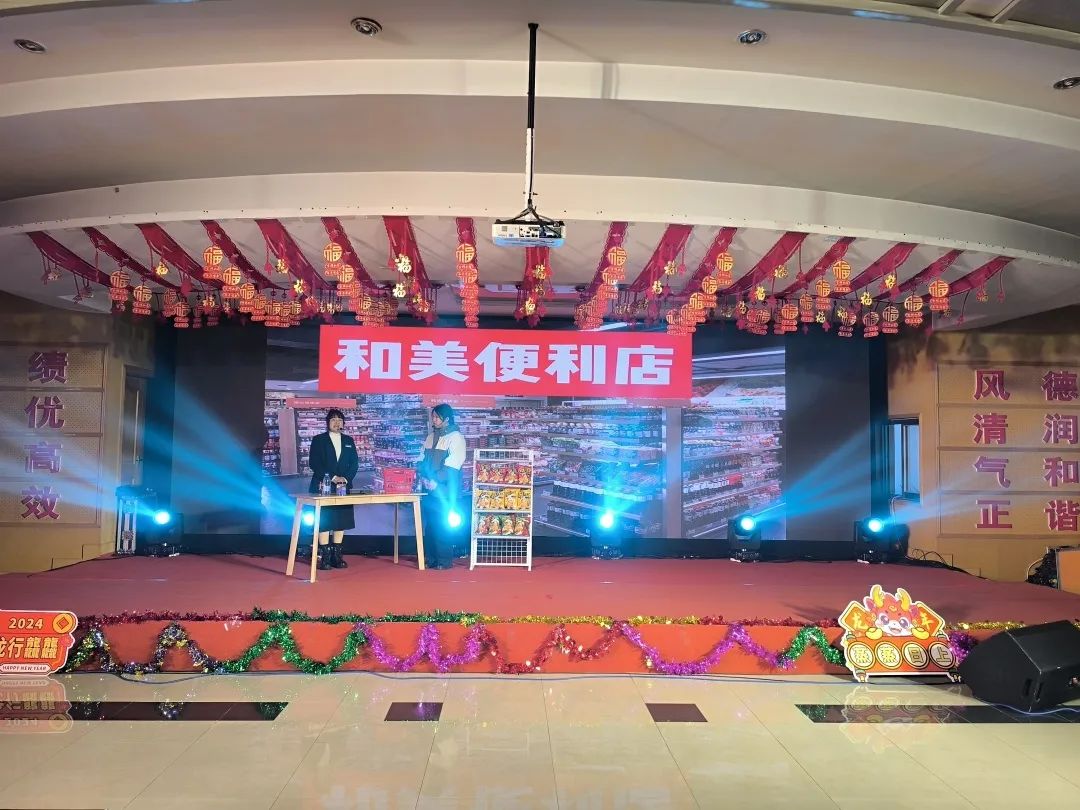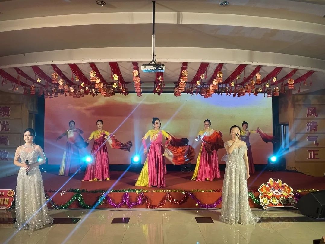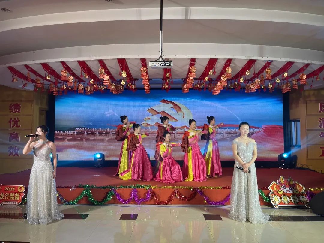 4.舞台上,有歌有舞,有欢声有笑语,为难得的相聚时光锦上添花。新荷经贸结合工作实际,带来了轻松欢乐的自编自导小品。
