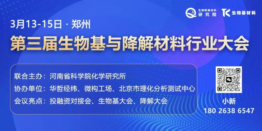 第三届生物基与降解材料行业大会将于2024年3月举办,欢迎产业链上下游提前沟通交流,详询小新18026386547(微信同号)。