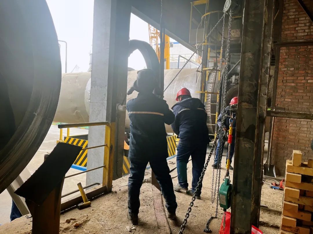 近日,陕西煤业化工集团神木电化公司电石车间自主完成了烘干机轮带的更换工作。