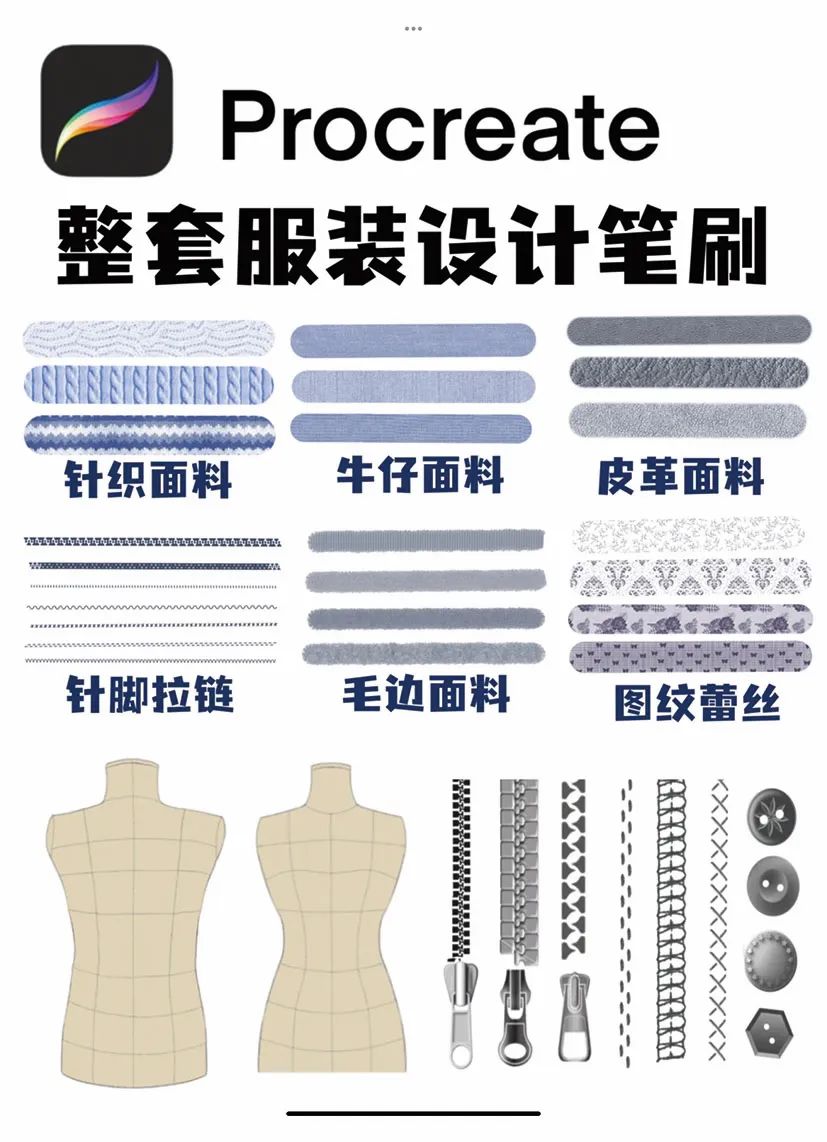 全套Procreate服装设计笔刷!!服装设计师必备!!(共800支)