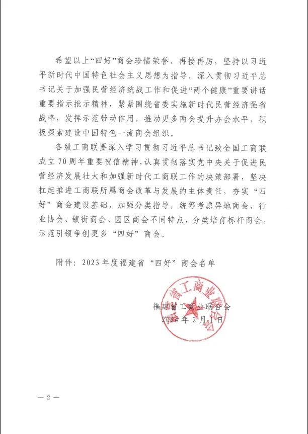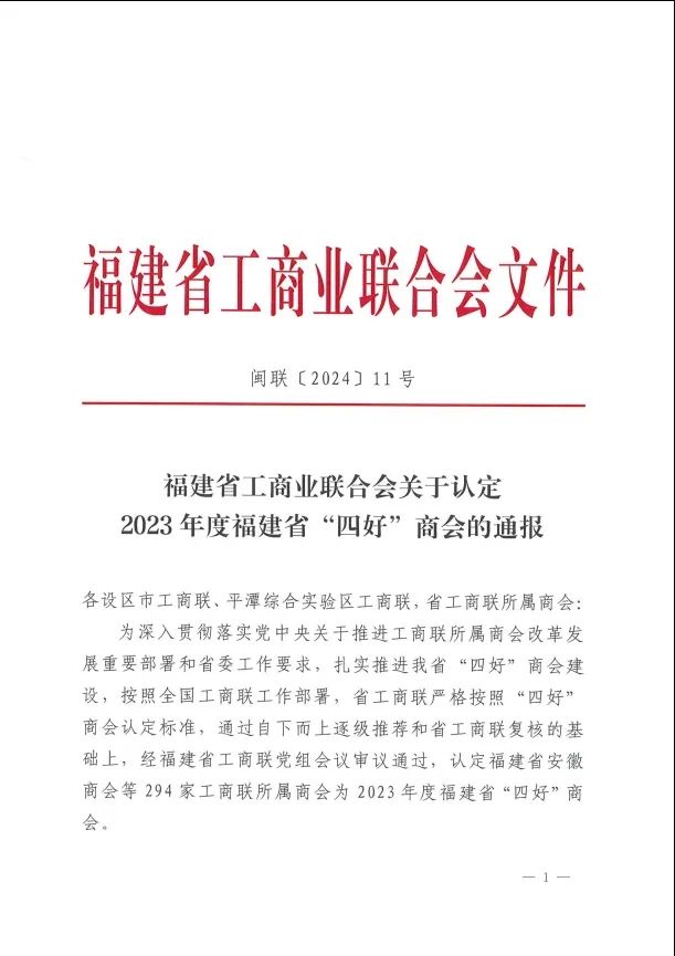 热烈祝贺福州市惠安商会第三次被福建省工商联授予福建省“四好”商会称号。感谢各级领导、社会各界对福州市惠安商会的关心和支持!福州市惠安商会将不忘初心,砥砺前行,继续做出更好的成绩回馈社会各界的信任与鼓励!