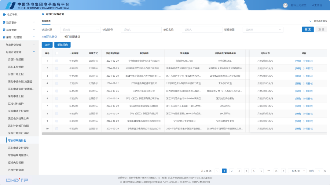 2月4日,中国华电集团电子商务平台采购计划管理及非招标采购系统建设项目采购计划管理模块顺利上线,开始试运行。